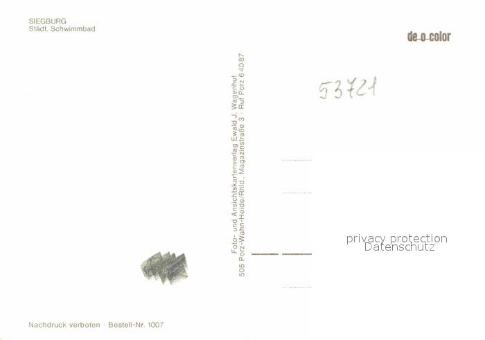 72904502 Siegburg Schwimmbad postalisch nicht gelaufen Erhaltung siehe scans [LiesaD40] KatCode: 11110005382060