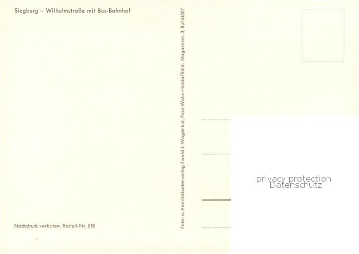 73606771 Siegburg Wilhelmstrasse mit Bus-Bahnhof postalisch nicht gelaufen Erhaltung siehe scans [LiesaD40] KatCode: 11110005382060