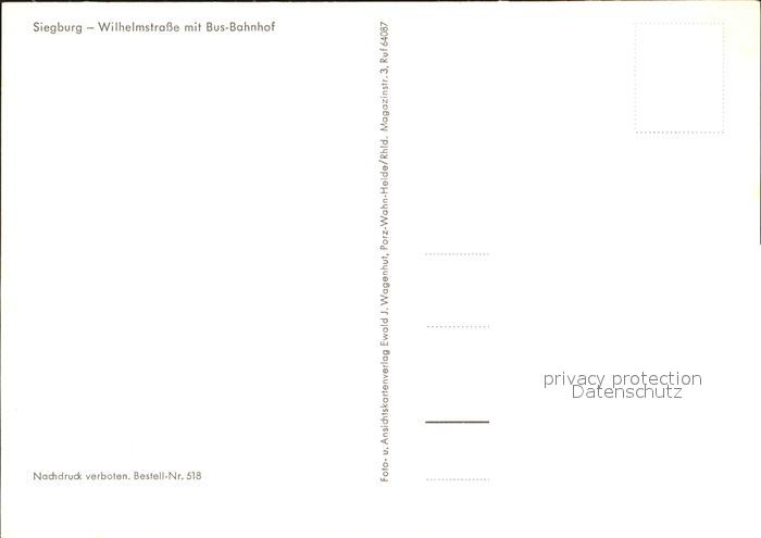 72002259 Siegburg Wilhelmstrasse mit Bus-Bahnhof postalisch nicht gelaufen Erhaltung siehe scans KatCode: 11110005382060