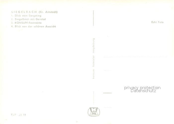 73675629 Siegelbach Arnstadt Ilm Blick vom Borgsteig Siegelbach mit Geratal Konsum-Gaststaette Schoene Aussicht postalisch nicht gelaufen Erhaltung siehe scans [FriedD77] KatCode: 11110016070004
