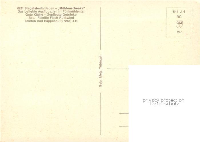 73128816 Siegelsbach Kraichgau Muehlenschenke Fuenfmuehlental postalisch nicht gelaufen Erhaltung siehe scans [KathaD81] KatCode: 11110008125087