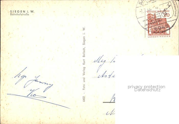 72420964 alte Postkarte Siegen Westfalen Bahnhofstrasse postalisch gelaufen Erhaltung siehe scans KatCode: 11110005970040