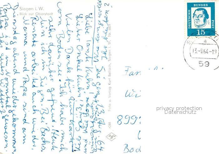 73022668 alte Postkarte Siegen Westfalen Blick auf Oberstadt postalisch gelaufen Erhaltung siehe scans [WerneD78] KatCode: 11110005970040