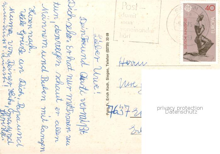 73867248 alte Postkarte Siegen Westfalen Blick vom Giersberg auf Siegberg Nikolaiturm Unteres Schloss Martinikirche Sandstrasse Marktplatz postalisch gelaufen Erhaltung siehe scans [WerneD78] KatCode: 11110005970040