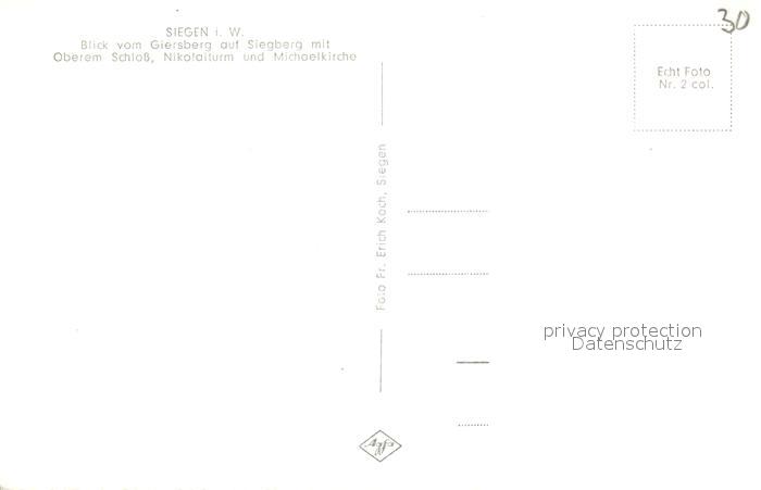 73293277 Siegen Westfalen Blick vom Giersberg mit Oberem Schloss Nikolaiturm und Michaelkirche postalisch nicht gelaufen Erhaltung siehe scans [WerneD78] KatCode: 11110005970040