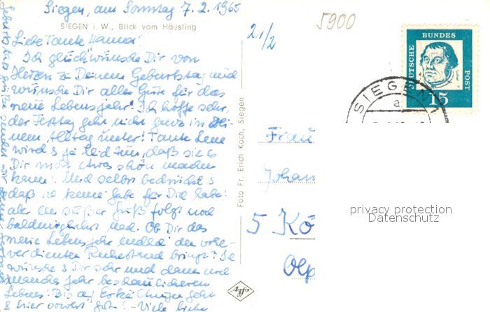 73560590 alte Postkarte Siegen Westfalen Blick vom Haeusling postalisch gelaufen Erhaltung siehe scans [KathaD81] KatCode: 11110005970040