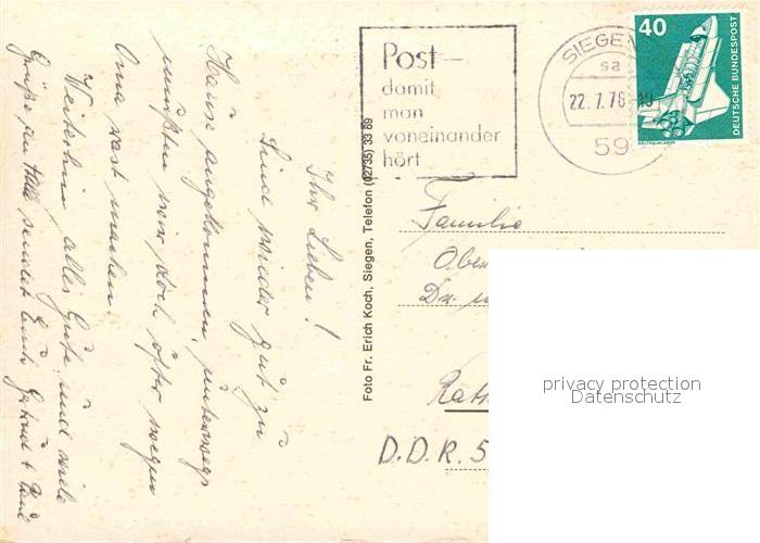 72917662 alte Postkarte Siegen Westfalen Fliegeraufnahme Hochhaeuser Fischbacherberg Fussgaengerzone Bahnhofstrasse postalisch gelaufen Erhaltung siehe scans [FriedD77] KatCode: 11110005970040