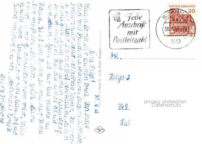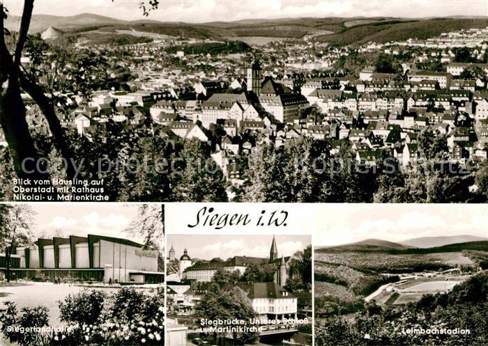 72697784 alte Postkarte Siegen Westfalen Haeusling Leimbachstadion Siegbruecke Kirche postalisch gelaufen Erhaltung siehe scans [KathaD79] KatCode: 11110005970040