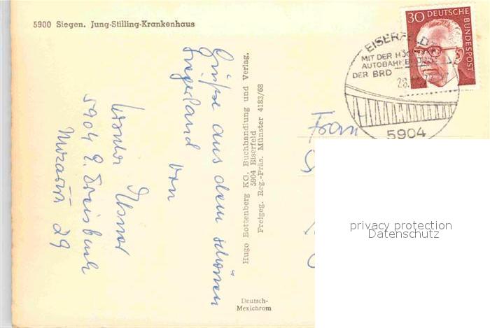 72917057 alte Postkarte Siegen Westfalen Jung-Stilling-Krankenhaus postalisch gelaufen Erhaltung siehe scans [NatalD47] KatCode: 11110005970040
