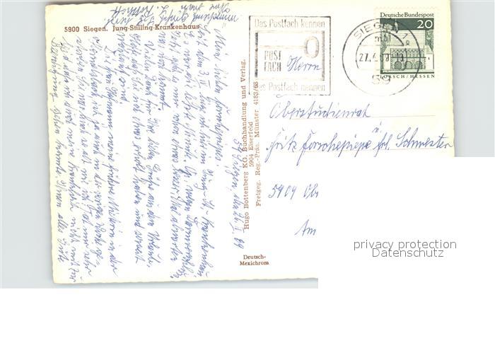 72538600 alte Postkarte Siegen Westfalen Jung Stilling Krankenhaus Fliegeraufnahme postalisch gelaufen Erhaltung siehe scans [WerneD78 kt117box] KatCode: 11110005970040