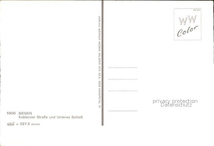 72549832 Siegen Westfalen Koblenzer Strasse Unteres Schloss postalisch nicht gelaufen Erhaltung siehe scans [AndreD76] KatCode: 11110005970040
