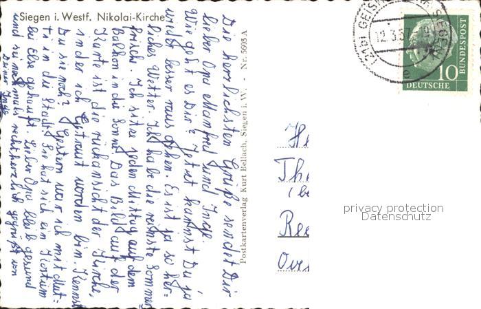 alte Postkarte Siegen Westfalen Nikolai Kirche postalisch gelaufen Erhaltung siehe scans