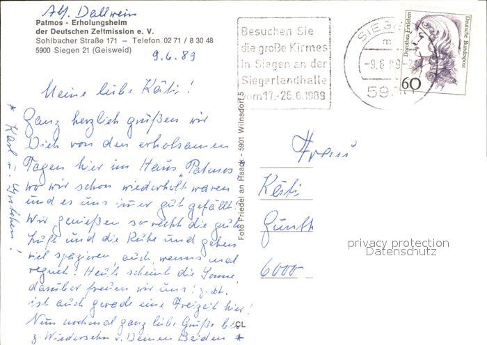72493030 alte Postkarte Siegen Westfalen Patmos Erholungsheim postalisch gelaufen Erhaltung siehe scans KatCode: 11110005970040