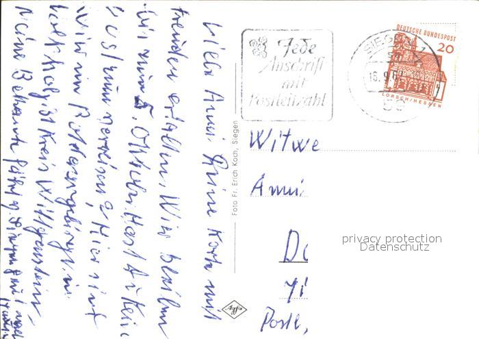 72177579 alte Postkarte Siegen Westfalen Rathaus Nikolai Marienkirche Siegbruecke Schloss Martinikirch postalisch gelaufen Erhaltung siehe scans KatCode: 11110005970040