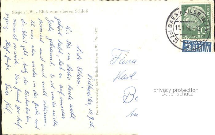 72199310 alte Postkarte Siegen Westfalen Schloss postalisch gelaufen Erhaltung siehe scans KatCode: 11110005970040