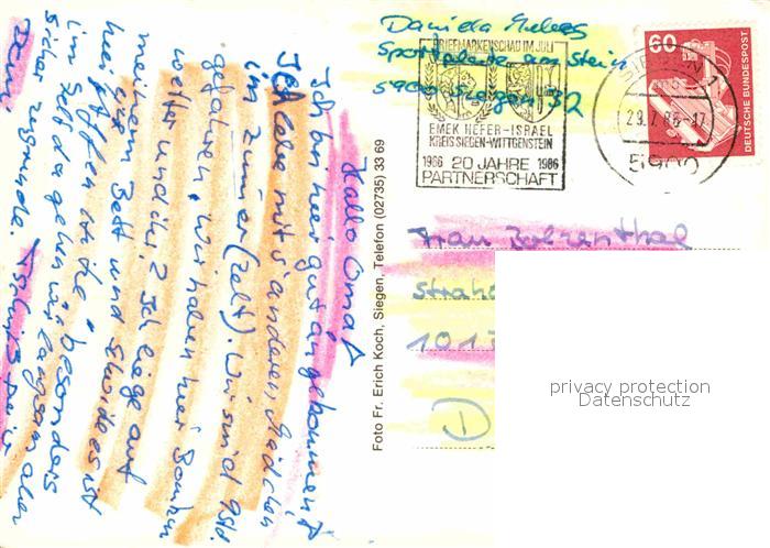 72917664 alte Postkarte Siegen Westfalen Schloss Marktplatz Kirche Koelner Tor Bahnhofsvorplatz Siegerlandhalle Burgstrasse Stadtmauer Leimbach Stadion postalisch gelaufen Erhaltung siehe scans [FriedD77] KatCode: 11110005970040