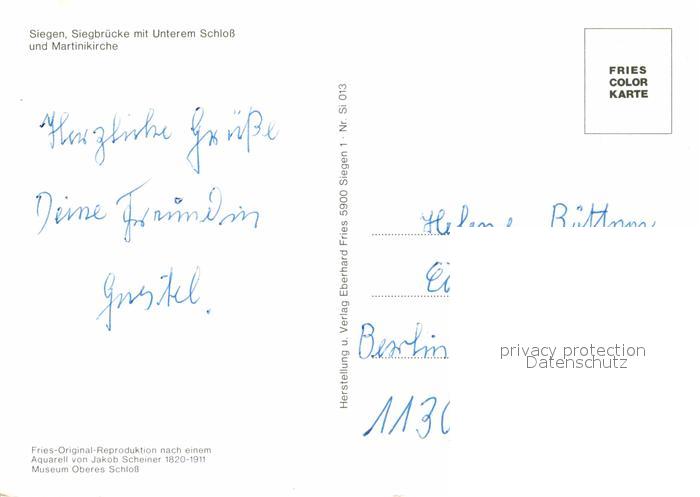 72663307 Siegen Westfalen Siegbruecke Unterem Schloss Martinikirche postalisch nicht gelaufen Erhaltung siehe scans [AndreD76] KatCode: 11110005970040