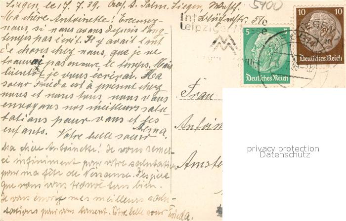 73700760 alte Postkarte Siegen Westfalen Stadtbild mit Schloss postalisch gelaufen Erhaltung siehe scans [FriedD77] KatCode: 11110005970040
