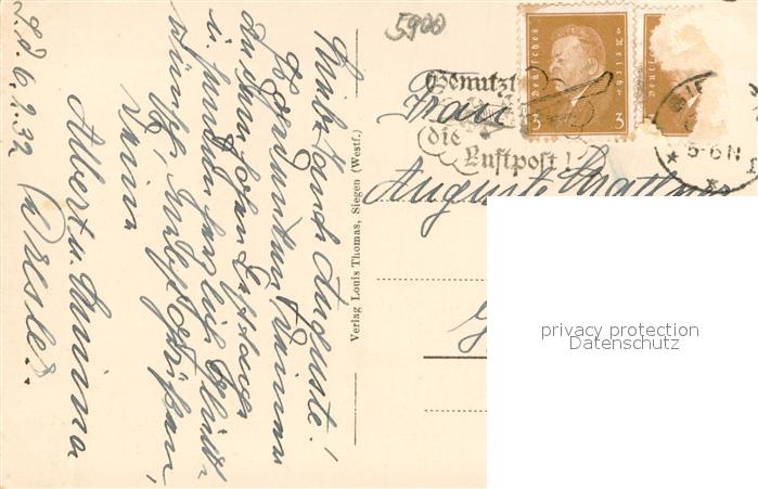 73700761 alte Postkarte Siegen Westfalen Stadtpanorama Blick vom Markt postalisch gelaufen Erhaltung siehe scans [FriedD77] KatCode: 11110005970040