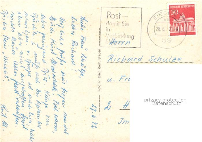 73291616 alte Postkarte Siegen Westfalen Unterstadt Fischbacherberg Oberes Schloss Rubensbrunnen postalisch gelaufen Erhaltung siehe scans [KathaD81] KatCode: 11110005970040