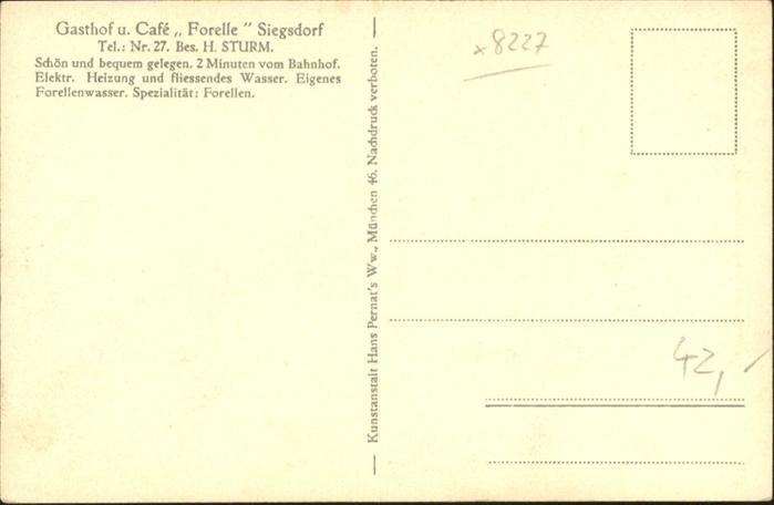 40939799 Siegsdorf Gasthof Cafe Forelle postalisch nicht gelaufen Alte Ansichtskarte Postkarte Katcode 11110009189145