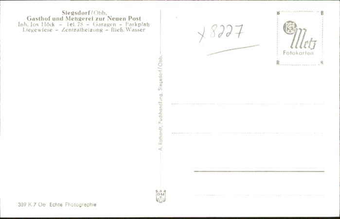 40939804 Siegsdorf Gasthof Metzgerei zur Neuen Post postalisch nicht gelaufen Alte Ansichtskarte Postkarte Katcode 11110009189145