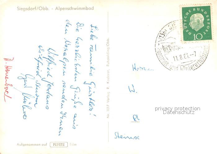 73644613 alte Postkarte Siegsdorf Oberbayern Alpenschwimmbad Freibad postalisch gelaufen Erhaltung siehe scans [FriedD77] KatCode: 11110009189145