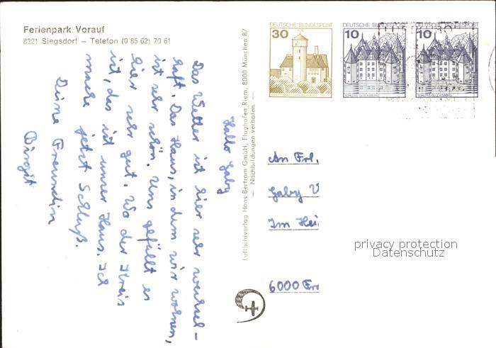 72016930 alte Postkarte Siegsdorf Oberbayern Fliegeraufnahme Ferienpark Vorauf postalisch gelaufen KatCode: 11110009189145