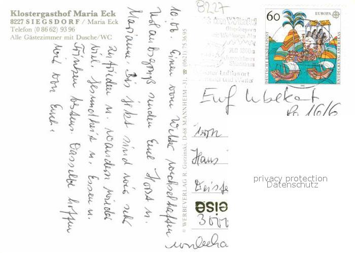 72825393 alte Postkarte Siegsdorf Oberbayern Klostergasthaus Maria Eck postalisch gelaufen Erhaltung siehe scans [AndreD76] KatCode: 11110009189145