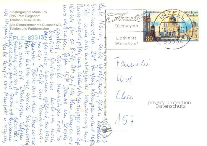 73652915 alte Postkarte Siegsdorf Oberbayern Klostergasthof Maria Eck Restaurant postalisch gelaufen Erhaltung siehe scans [FriedD77] KatCode: 11110009189145