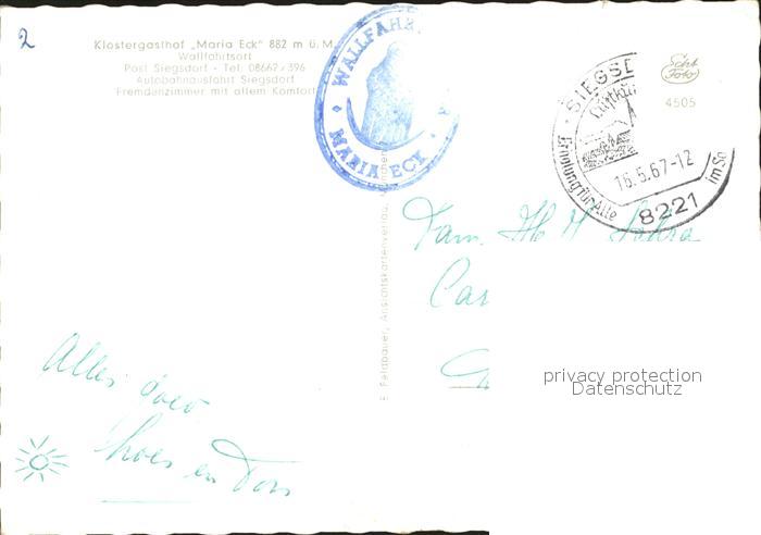 72076795 alte Postkarte Siegsdorf Oberbayern Klostergasthof Maria Eck postalisch gelaufen Erhaltung siehe scans KatCode: 11110009189145