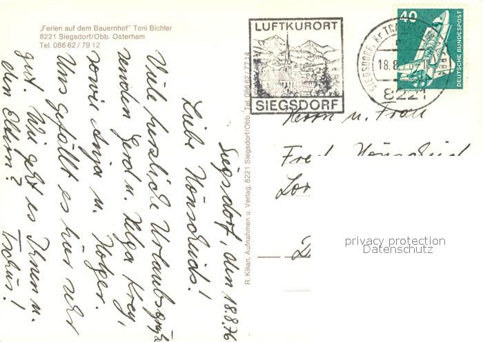 73024551 alte Postkarte Siegsdorf Oberbayern Osterham Ferien auf dem Bauernhof postalisch gelaufen Erhaltung siehe scans [KathaD81] KatCode: 11110009189145