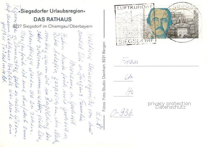 73064485 alte Postkarte Siegsdorf Oberbayern Rathaus Cafe postalisch gelaufen Erhaltung siehe scans [FriedD77] KatCode: 11110009189145