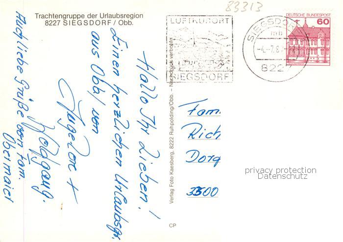 73865375 alte Postkarte Siegsdorf Oberbayern Trachtengruppe postalisch gelaufen Erhaltung siehe scans [WerneD78] KatCode: 11110009189145