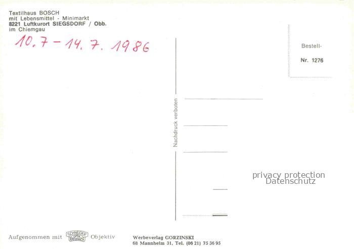 74096375 Siegsdorf Oberbayern Traunstein Textilhaus Bosch postalisch nicht gelaufen Erhaltung siehe scans [WerneD78] KatCode: 11110009189145