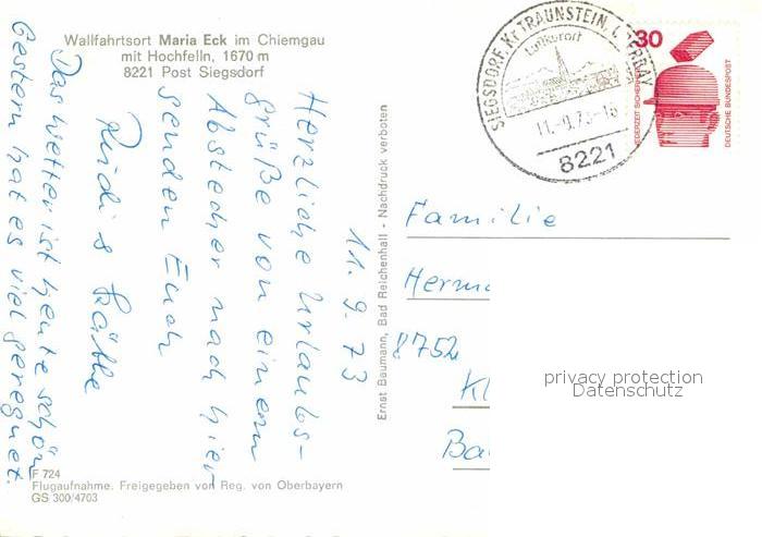 72889014 alte Postkarte Siegsdorf Oberbayern Wallfahrtsort Maria Eck postalisch gelaufen Erhaltung siehe scans [LiesaD40] KatCode: 11110009189145