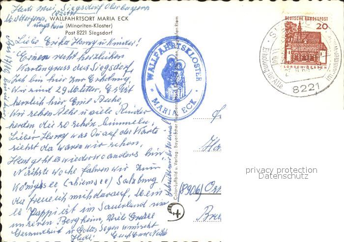 alte Postkarte Siegsdorf Oberbayern Wallfahrtsort Maria Eck postalisch gelaufen Erhaltung siehe scans