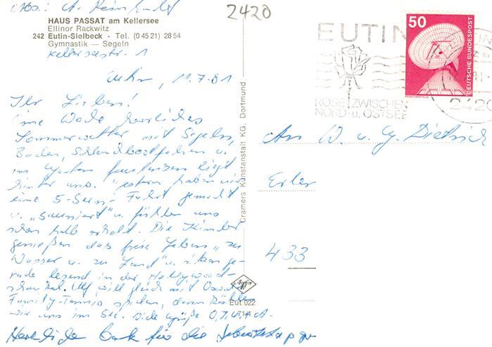 73890590 alte Postkarte Sielbeck Holsteinische Schweiz Gaestehaus Pension Haus Passat am Kellersee postalisch gelaufen Erhaltung siehe scans [FriedD77] KatCode: 11110001055012