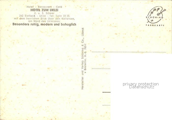 71905667 Sielbeck Holsteinische Schweiz Hotel Restaurant zum Uklei postalisch nicht gelaufen Erhaltung siehe scans KatCode: 11110001055012