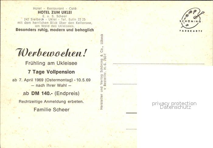 Sielbeck Holsteinische Schweiz Hotel zum Uklei postalisch nicht gelaufen Werbekarte (keine Postkarte) Erhaltung siehe scans