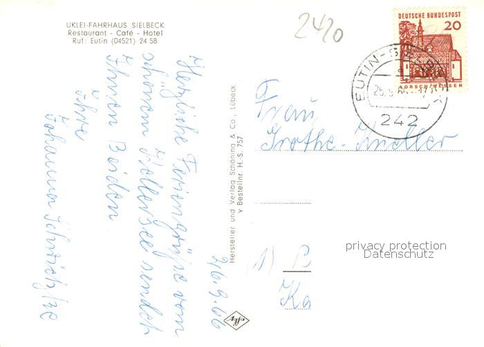 73566565 alte Postkarte Sielbeck Holsteinische Schweiz Uklei Faehrhaus Restaurant Hotel postalisch gelaufen Erhaltung siehe scans [WerneD78] KatCode: 11110001055012
