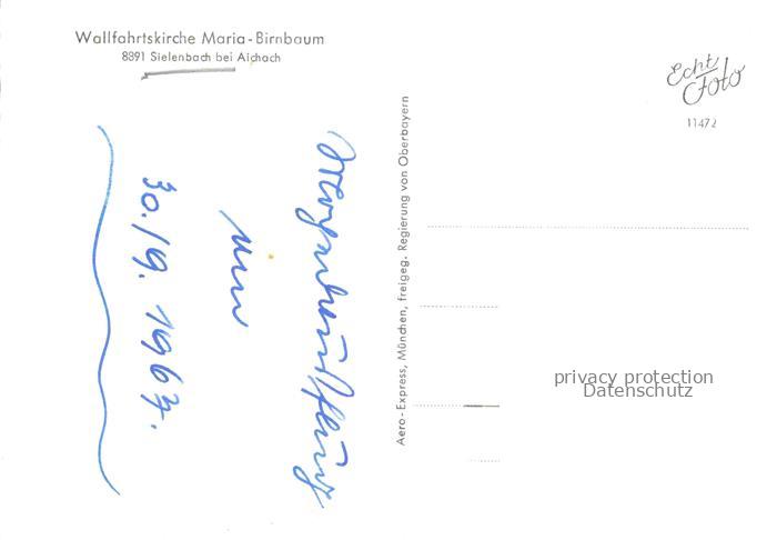 Sielenbach Aichach-Friedberg Bayern Wallfahrtskirche Maria-Birnbaum postalisch nicht gelaufen Fliegeraufnahme Erhaltung siehe scans [FriedD77] Fliegeraufnahme Frie Katcode 11110009771165