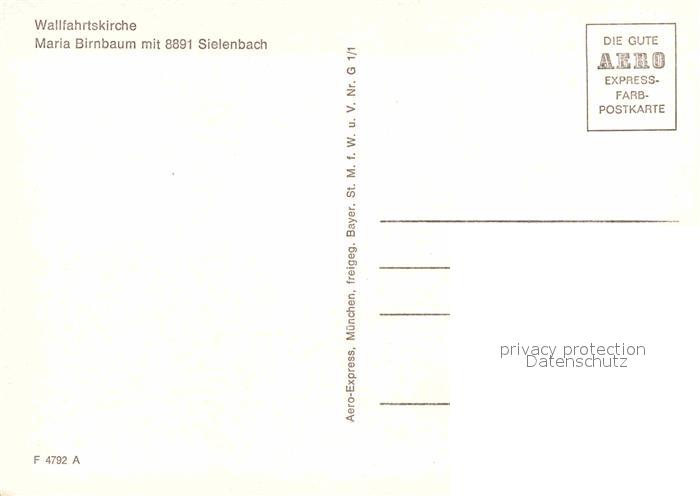 72927945 Sielenbach Wallfahrtskirche Maria Birnbaum Fliegeraufnahme postalisch nicht gelaufen Erhaltung siehe scans [FriedD77] KatCode: 11110009771165