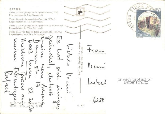 old postcard Siena Fonte Gaia di Jacopo della Quercia XV secolo Riproduzione di Tito Sarrocchi postalisch gelaufen Erhaltung siehe scans
