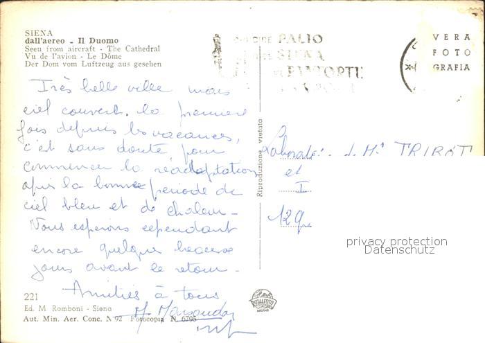 old postcard Siena Il Duomo Fliegeraufnahme postalisch gelaufen Erhaltung siehe scans