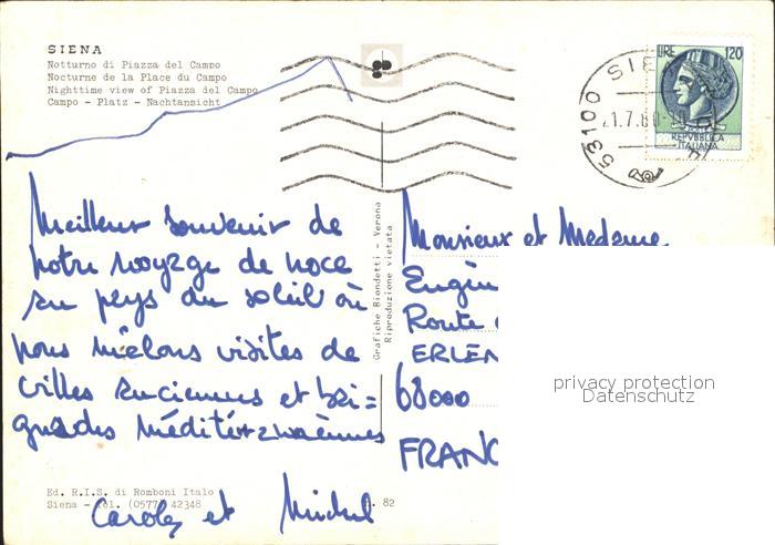 old postcard Siena Notturno di piazza del Campo postalisch gelaufen Erhaltung siehe scans