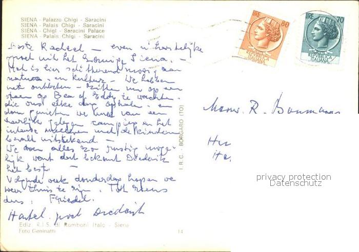 old postcard Siena Palazzo Chigi Saracini Schloss postalisch gelaufen Erhaltung siehe scans
