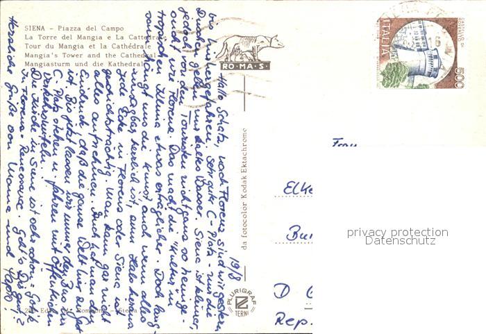 old postcard Siena Piazza del Campo Torre del Mangia Cattedrale veduta aerea postalisch gelaufen Erhaltung siehe scans [FriedD77]