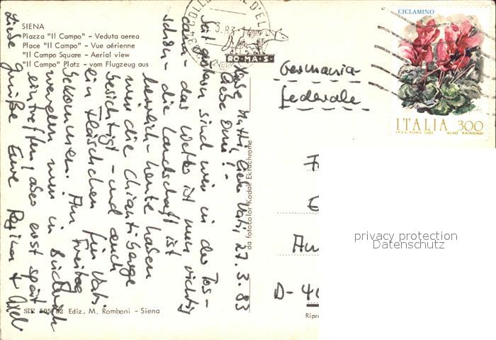 old postcard Siena Piazza Il Campo Palazzo Pubblico veduta aerea postalisch gelaufen Erhaltung siehe scans