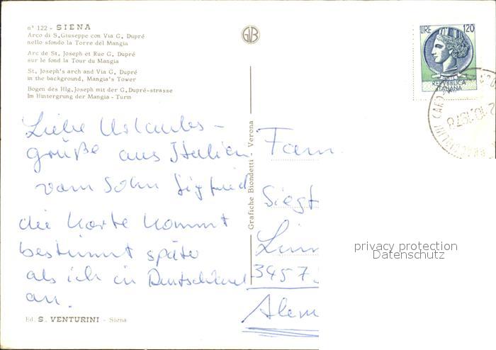 old postcard Siena St. Joseph arch Via C. Dupre postalisch gelaufen Erhaltung siehe scans